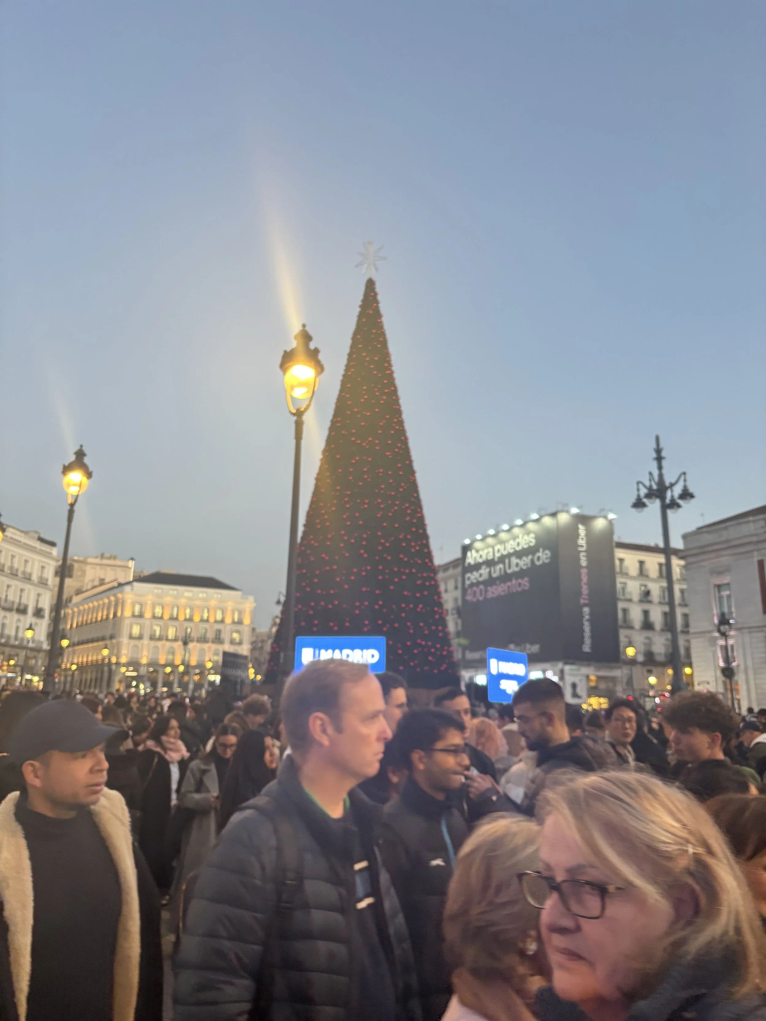 Walk: We had a quick brunch close to the hotel. Once our room was available, we went to the room to take a nap. We slept until noon-3:30pm and then decided to go for a walk. We visited Plaza Major and Puerta del Sol and surrounding areas. Christmas was already in full swing and the Christmas tree lighting was that night! Such a beautiful tree. We saw the Almudena Cathedral and the Palace from the outside.