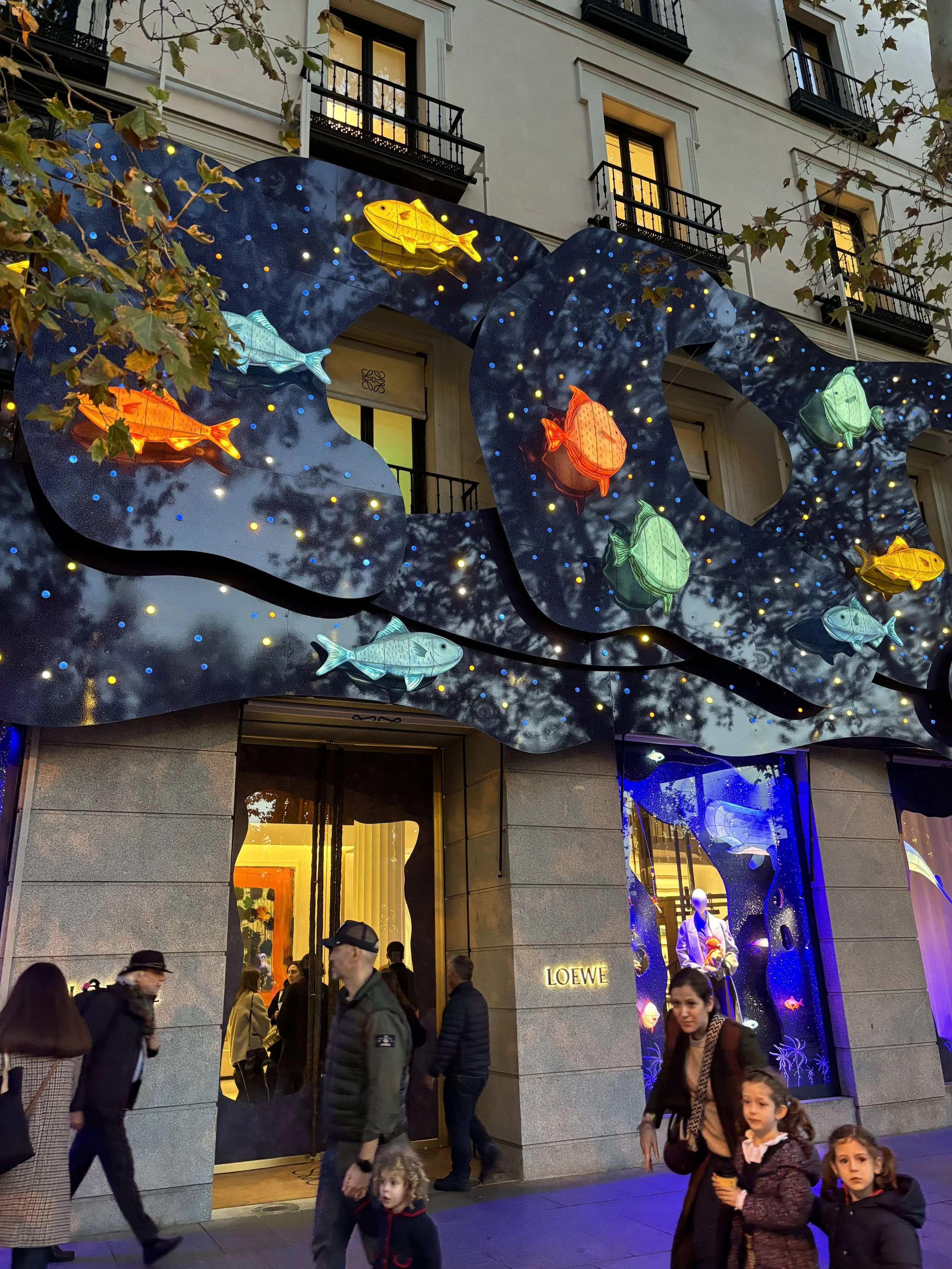 Fancy shops: In the Salamanca district, we are talking fancy. Chanel, Louis, Hermes, Dior, Rimowa, and so much more. I also learned about the Tous jewelry brand there — they have a cute bear logo. I didn’t find anything to take back, but a great spot if you’re in the market for some luxury gifts. I felt like I was in NYC only shorter buildings, cleaner streets, and beautiful Christmas lights everywhere!!